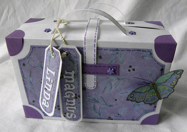 Ett par som ska gifta sej... bröllopet ska gå i vitt och lila och paret önskar sej pengar till en resa. Vad passar då bättre än denna resväska?!